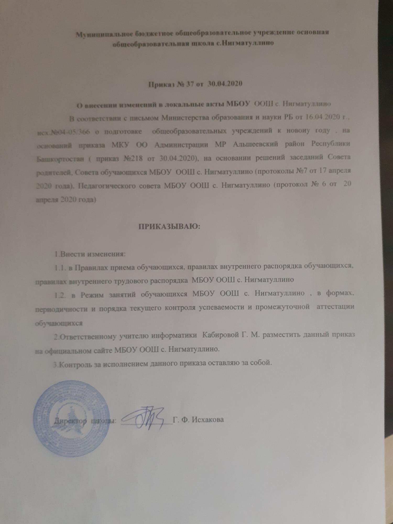 МБОУ ООШ с.Нигматуллино информирует, что с 06 апреля 2020 года в школах МР Альшеевского района образовательный процесс будет организован в дистанционном формате: через электронное обучение и использование дистанционных образовательных технологий.