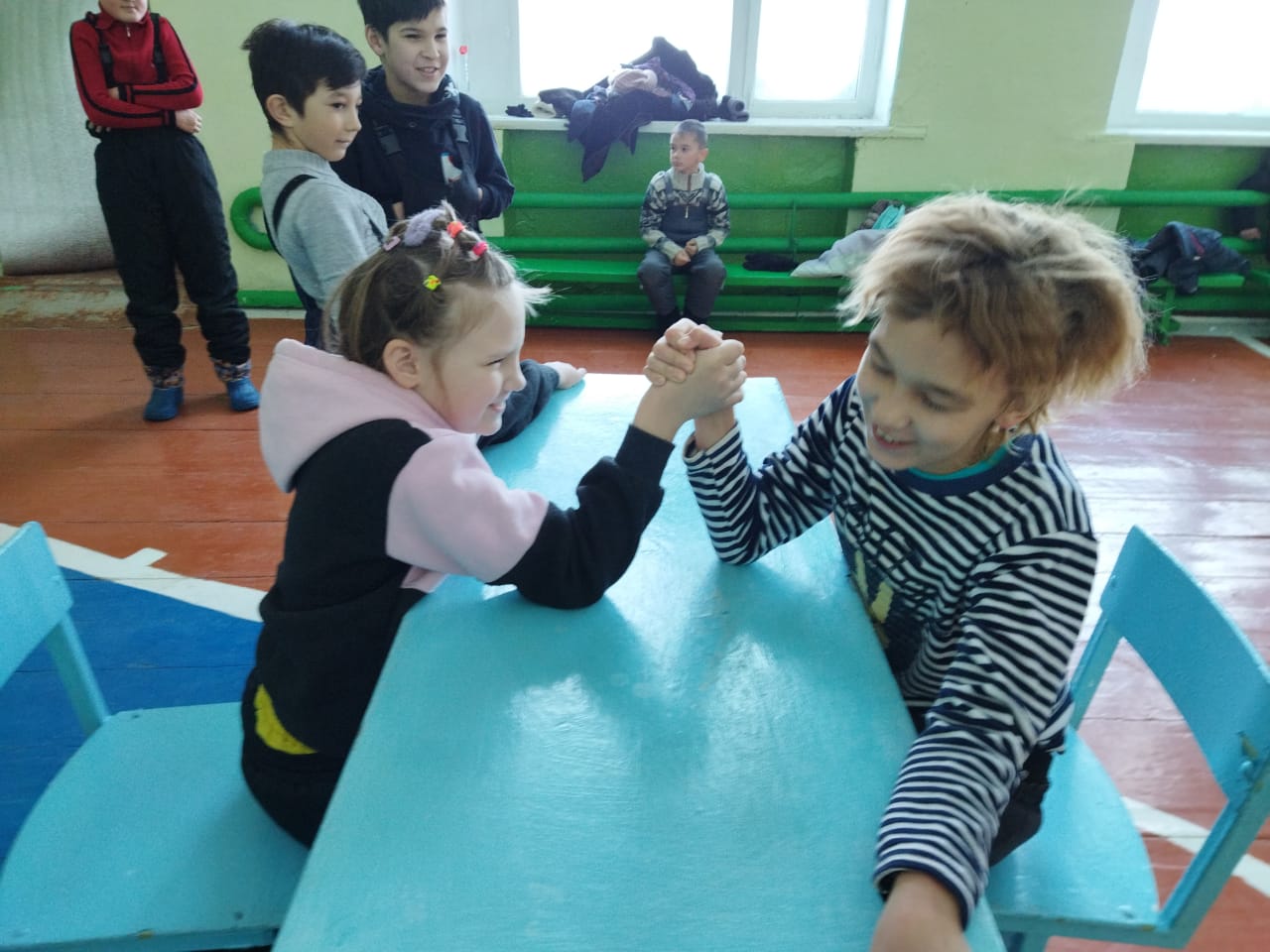 Также сегодня состоялись состязания батыров. Сначала игры проходили на улице, дети играли в царь горы, затем катали друг друга на тюнинге,затем действия перешли в спортзал. Среди начальных классов прошли весёлые старты, армреслинг, а у старших ещё и гиревой спорт. Все с хорошим настроением и зарядом бодрости ушли домой.