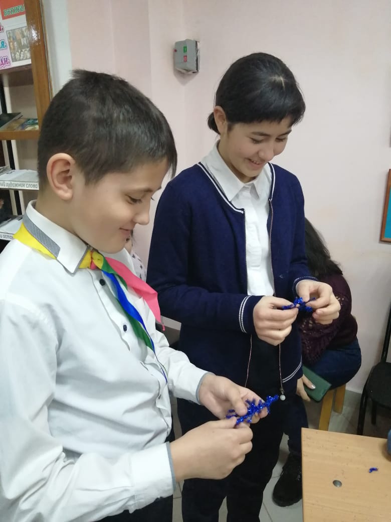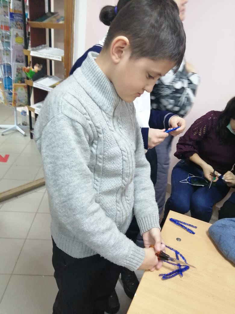 Для гостей была проведена познавательная программа “Воздушные чудеса”. Сотрудники библиотеки рассказали ребятам об удивительных свойствах снежинок и мыльных пузырей. Мальчики и девочки с огромным интересом приняли участие в экспериментах по выдуванию пузырей . А также в мастер-классе по созданию снежинок из синельной проволоки.