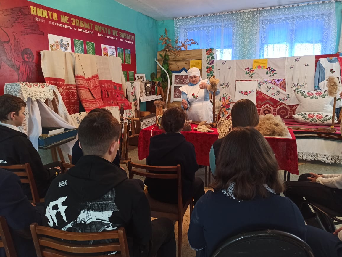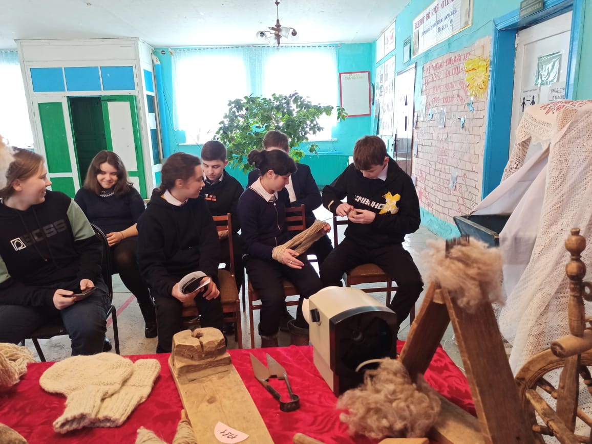 По «Пушкинской карте» обучающиеся 8-9 классов посетили сельскую библиотеку, где посмотрели мастер класс "Обработка овечьей шерсти".