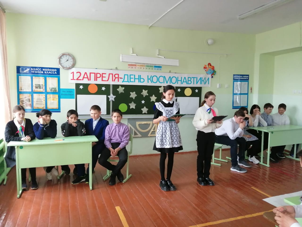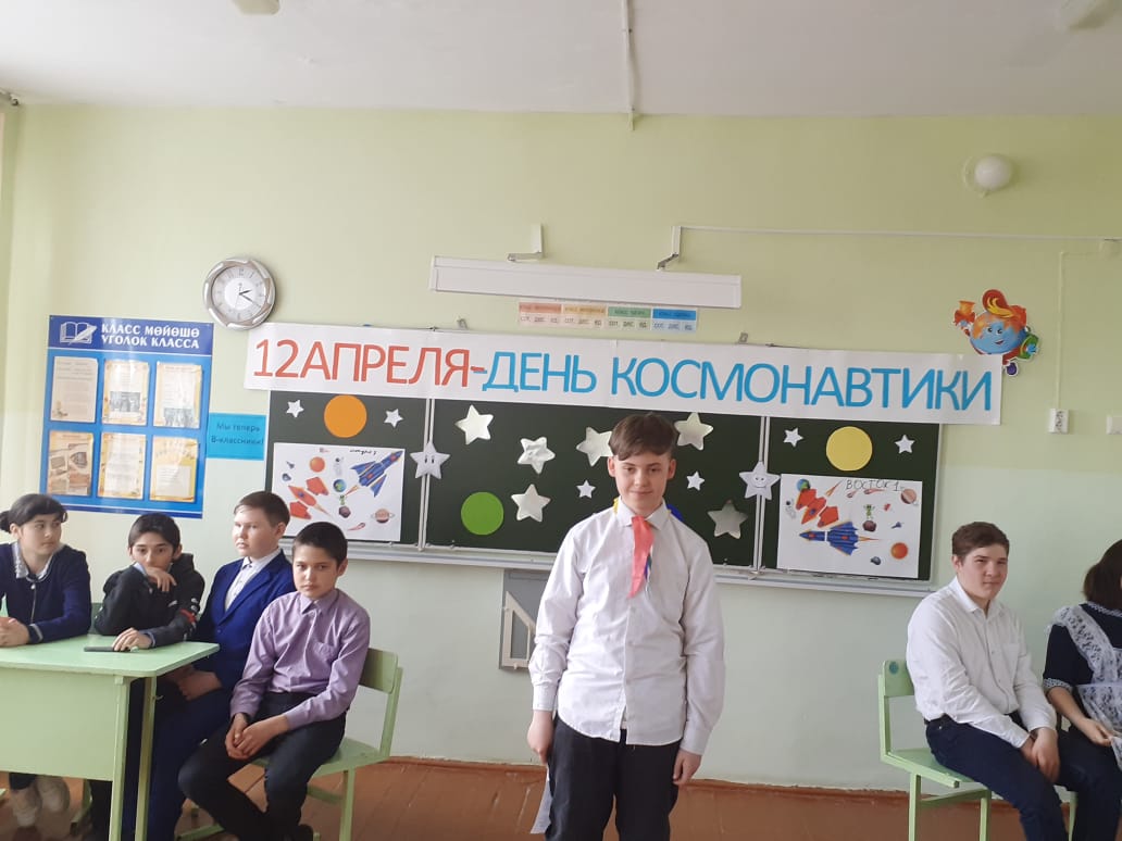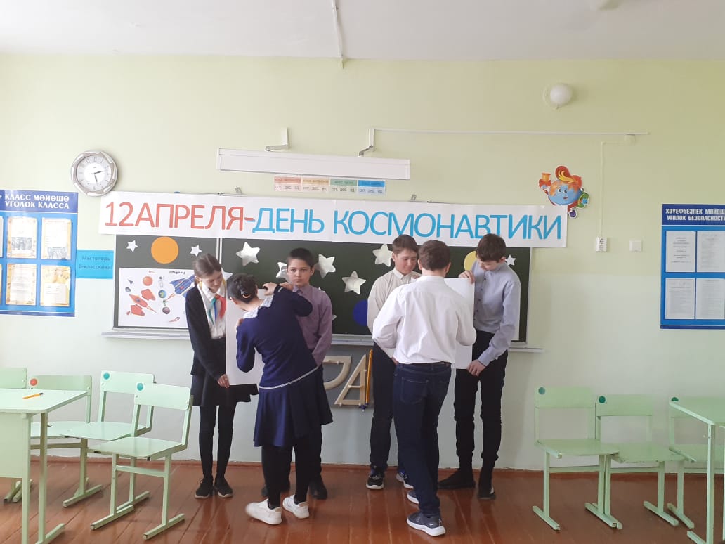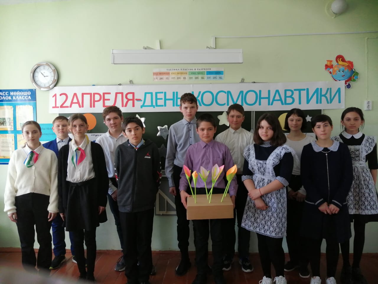 В нашей школе прошло мероприятие, приуроченное именно этой дате. За этим путешествием наблюдало Генеральное Адмиралтейство космических дорог (учителя и гости мероприятия). С нами в путешествие отправились специалисты по космологии (учащиеся 6 класса). Во время длительных перелетов они знакомили всех с историей космонавтики. В полет отправились две команды "Восток" (8 класс) и "Старт" (7 класс). Команды состязались в следующих конкурсах : "Построй ракету", "Надень скафандр", "Нарисуй лунатика", "Отгадай загадки", "Космический квиз", "Посади сад".Участие в конкурсах, играх сделало встречу незабываемым космическим путешествием, в котором победила дружба.