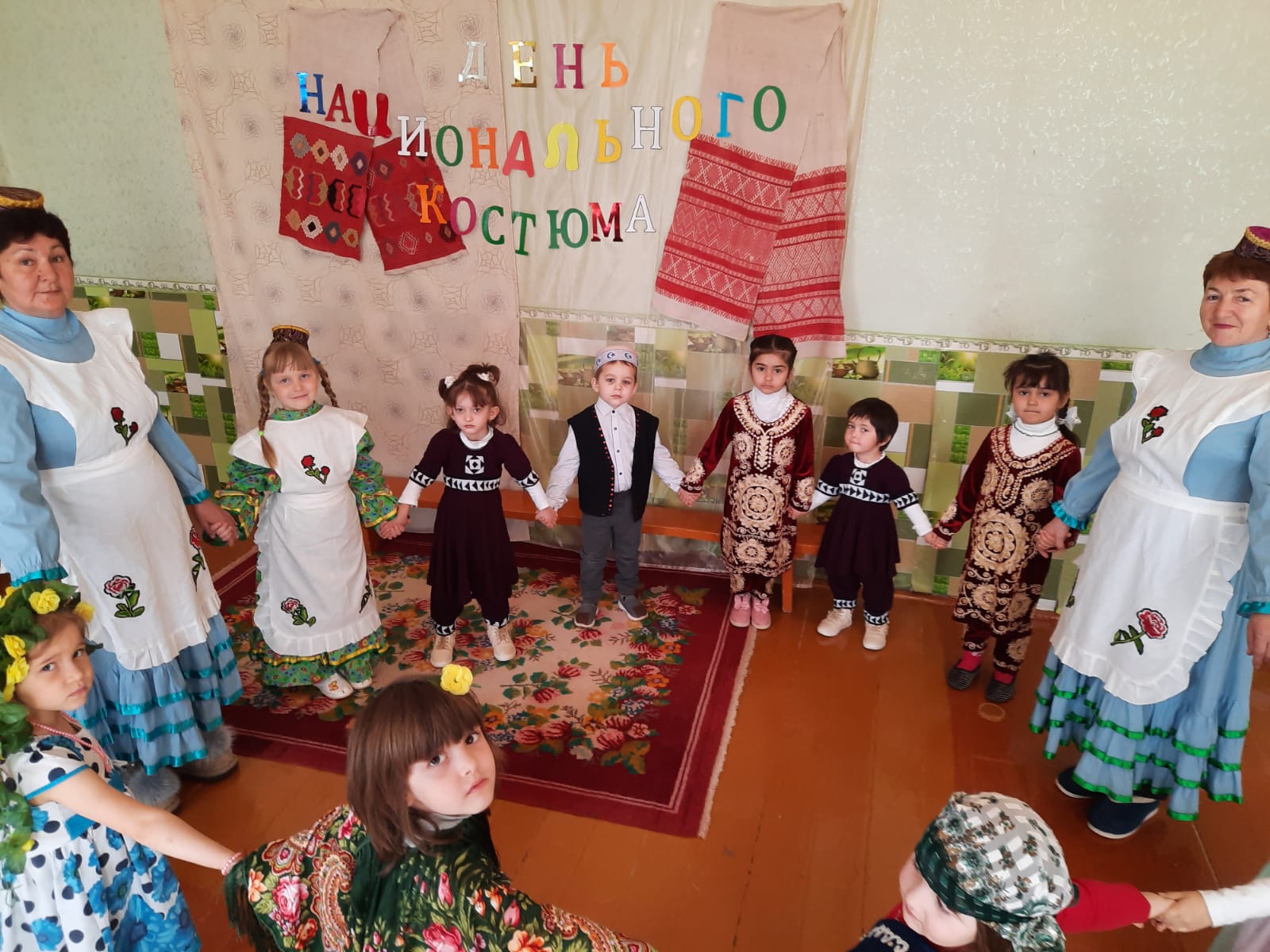 Сегодня в нашей дошкольной группе прошло мероприятие, посвященное Дню национального костюма. Целью мероприятия стало: воспитание у детей желание сохранять и продолжать традиции народа. Провели беседы ,,История национального костюма", ,,Моя одежда". В нашей деревне живут представители разных народов и в нашу группу ходят дети разных национальностей :русские, татары, башкиры, узбеки, таджики. Каждый из них имеет свою богатую культуру и традиции. Все это выражается в стихах, песнях, танцах, пословицах, поговорках, народных костюмах и мы, воспитатели, понимаем важность передачи знаний о традициях разных народов подрастающему поколению.