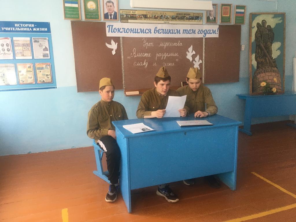 В 5-9 классах прошли уроки мужества на темы «Дней прошлых гордые слёзы» , «Вместе разделим славу и честь», "Фронтовой портрет. Судьба солдата".