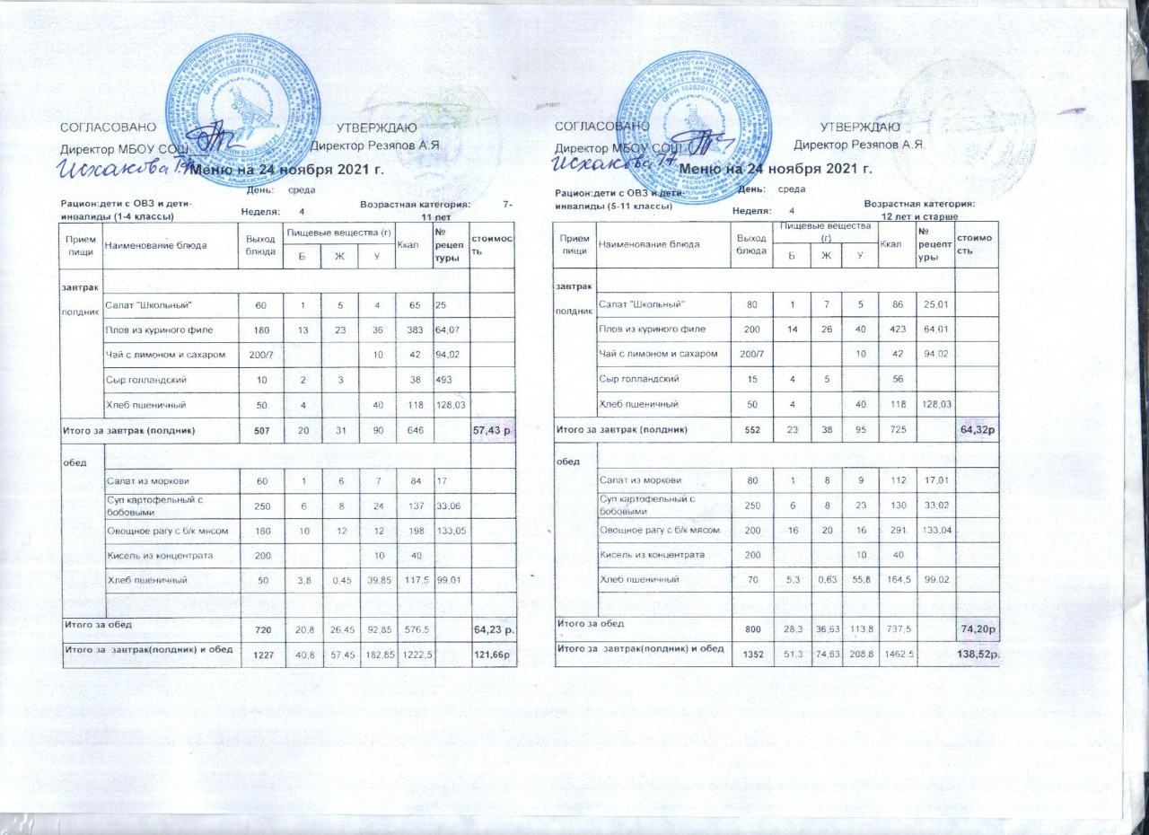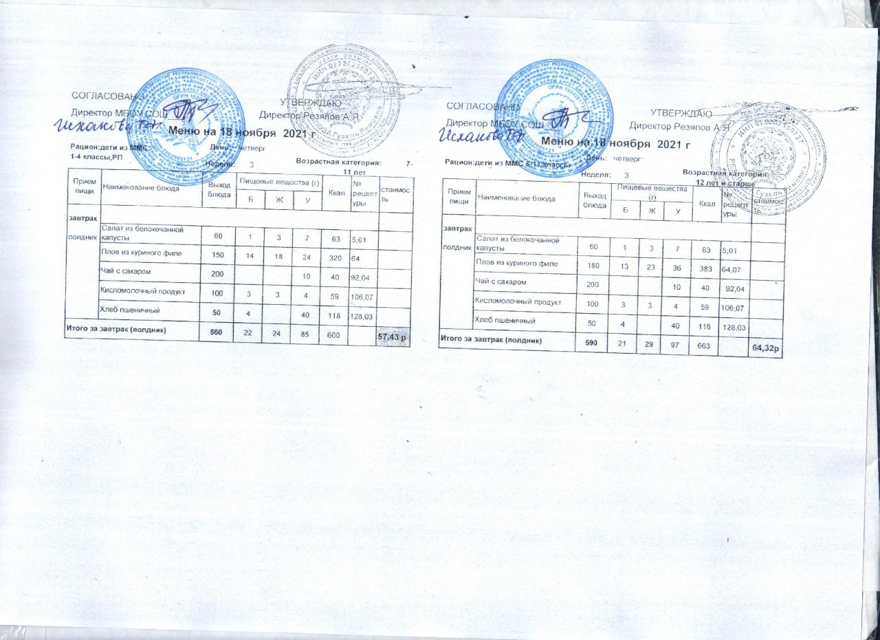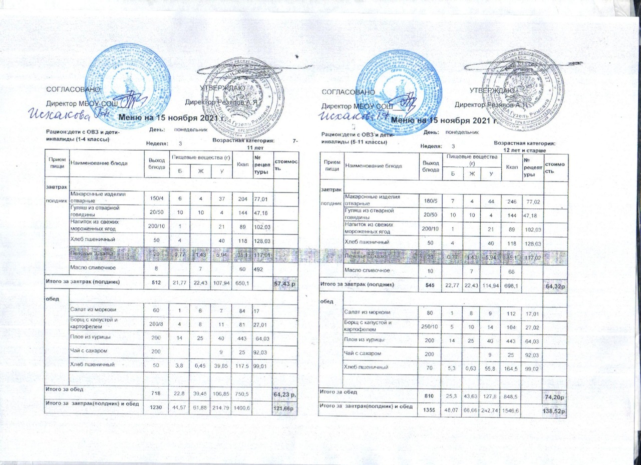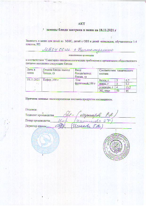(Акт замены блюда завтрака в меню)