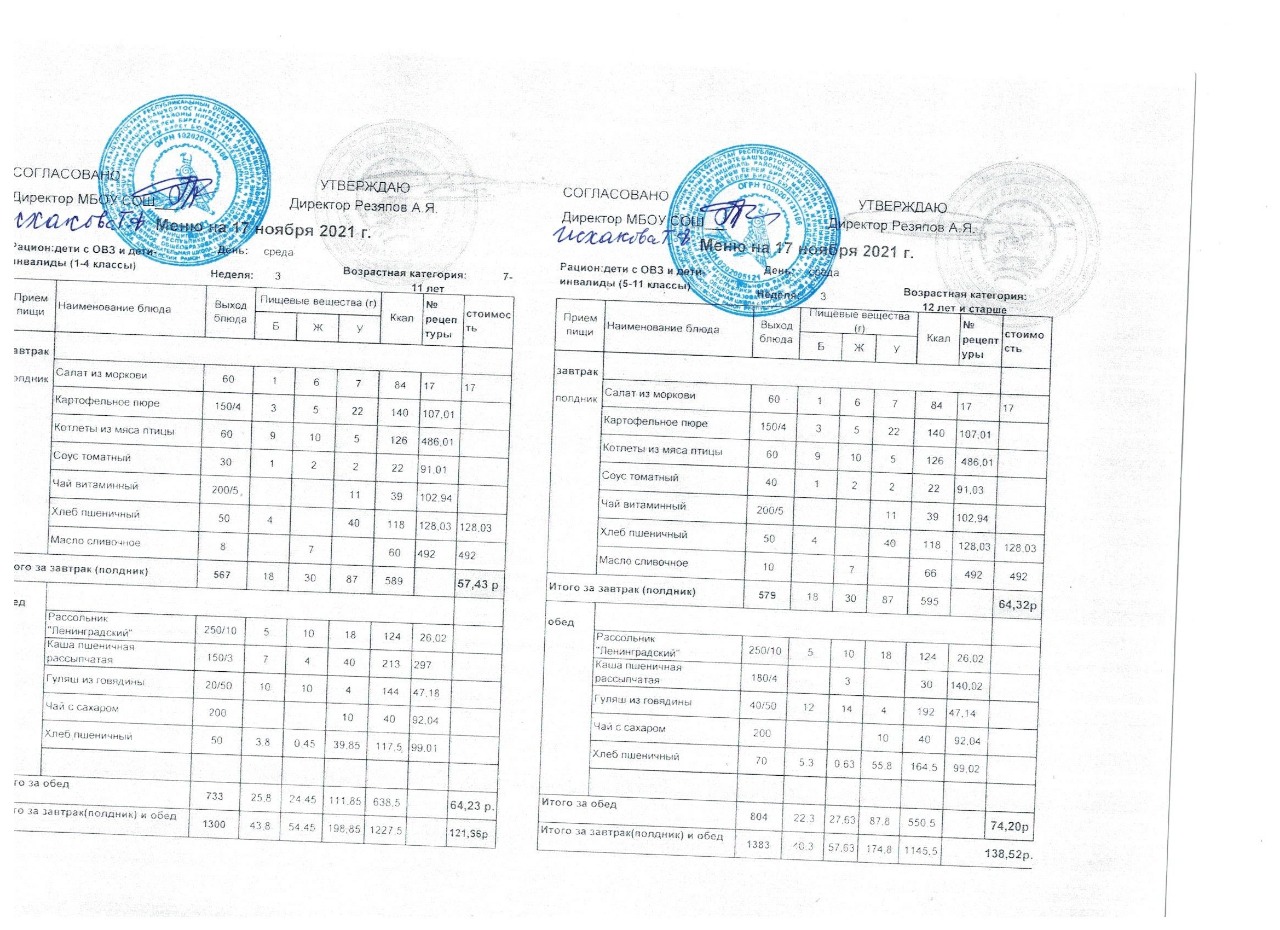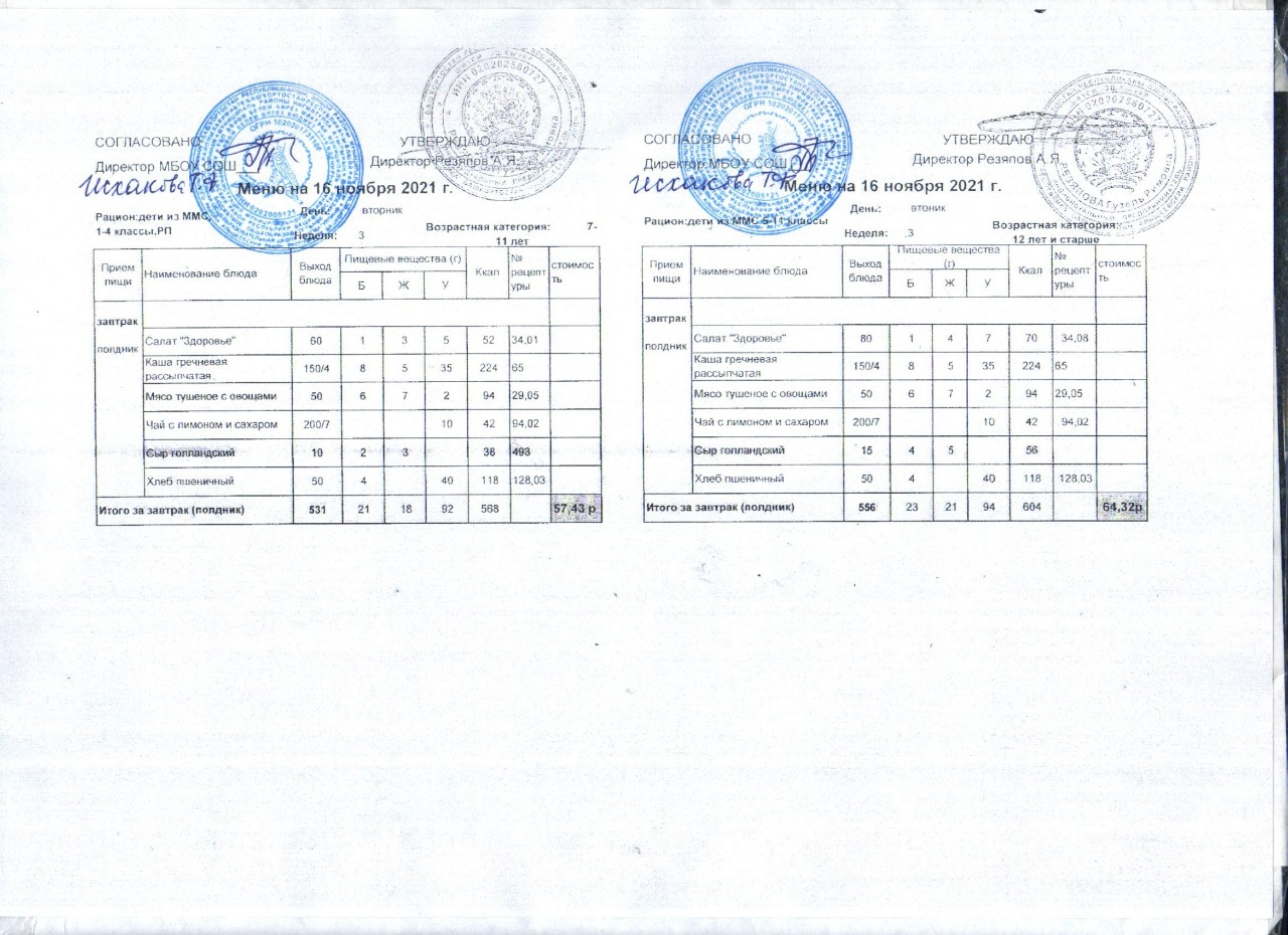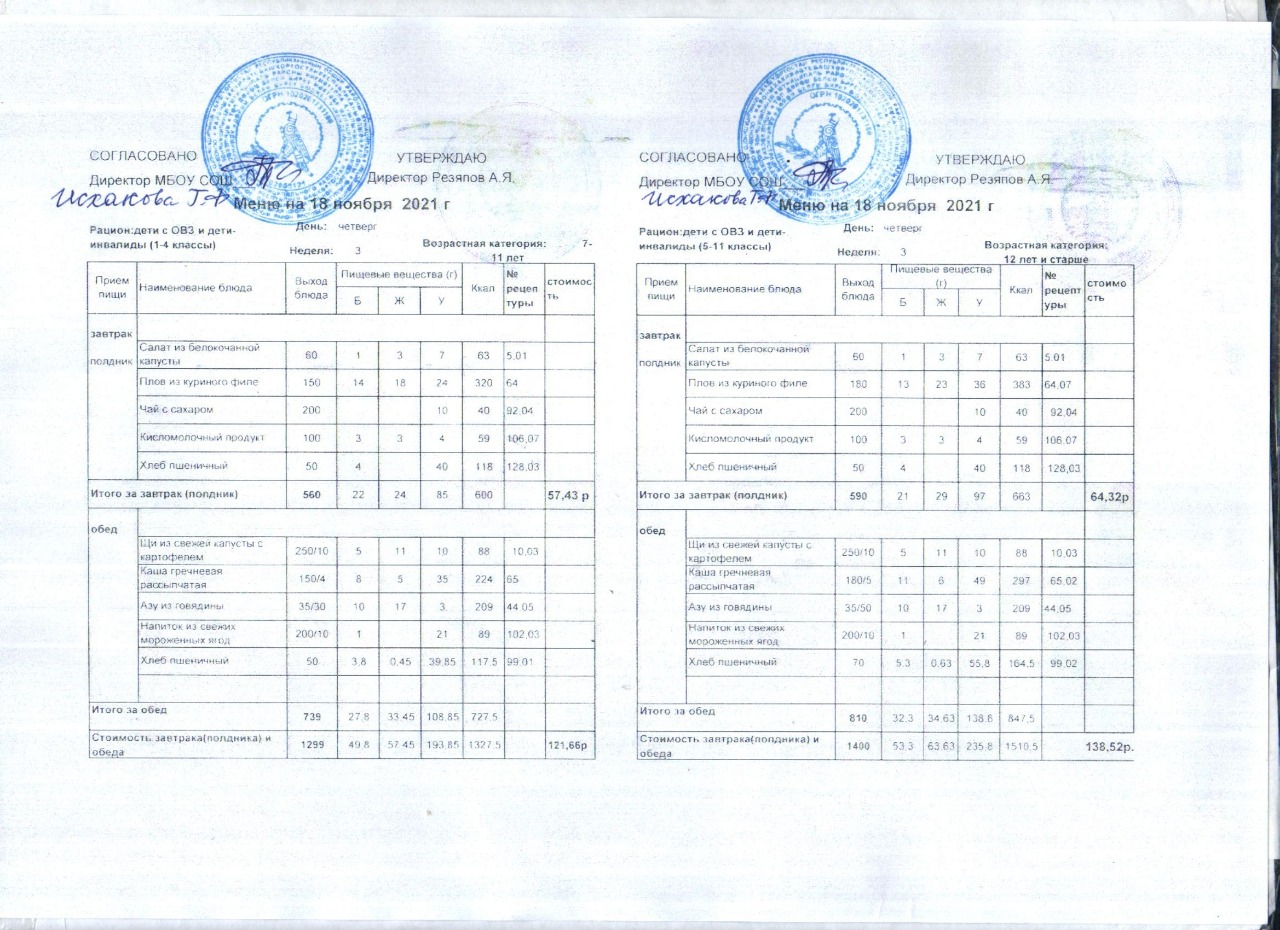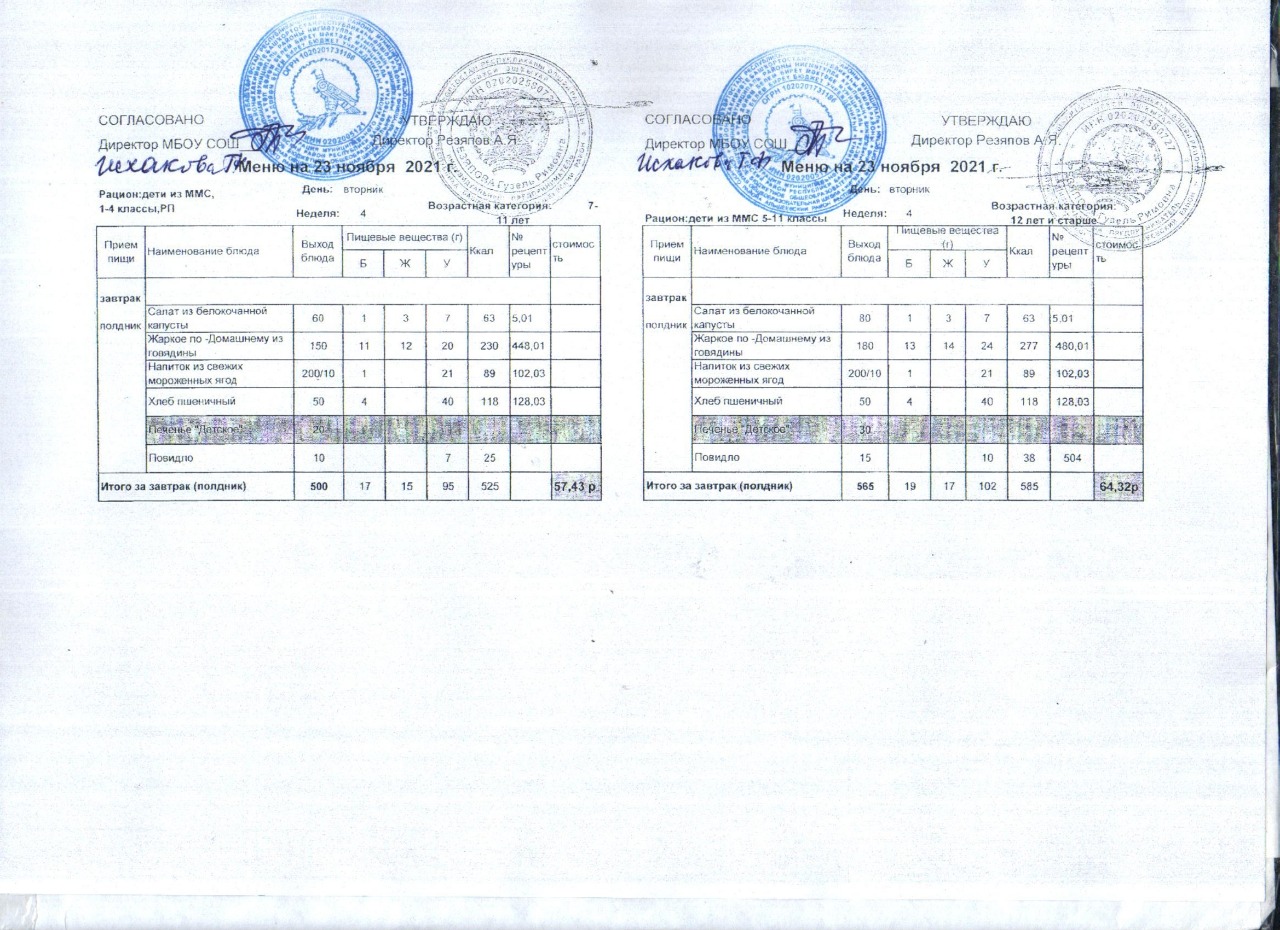 (Акт замены блюда завтрака в меню)