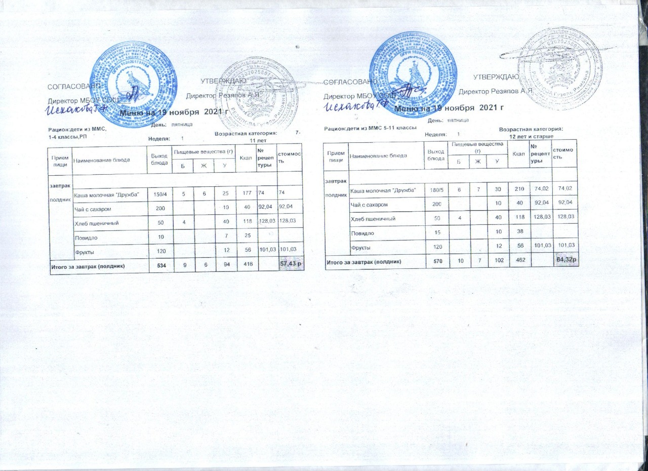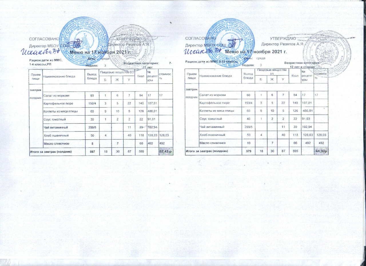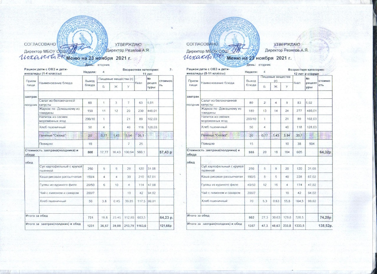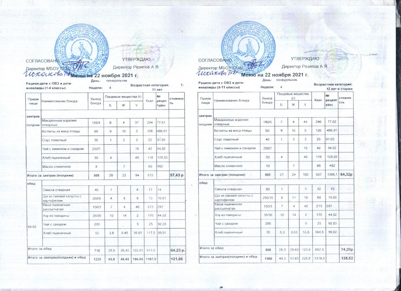 (Акт замены блюда завтрака в меню)