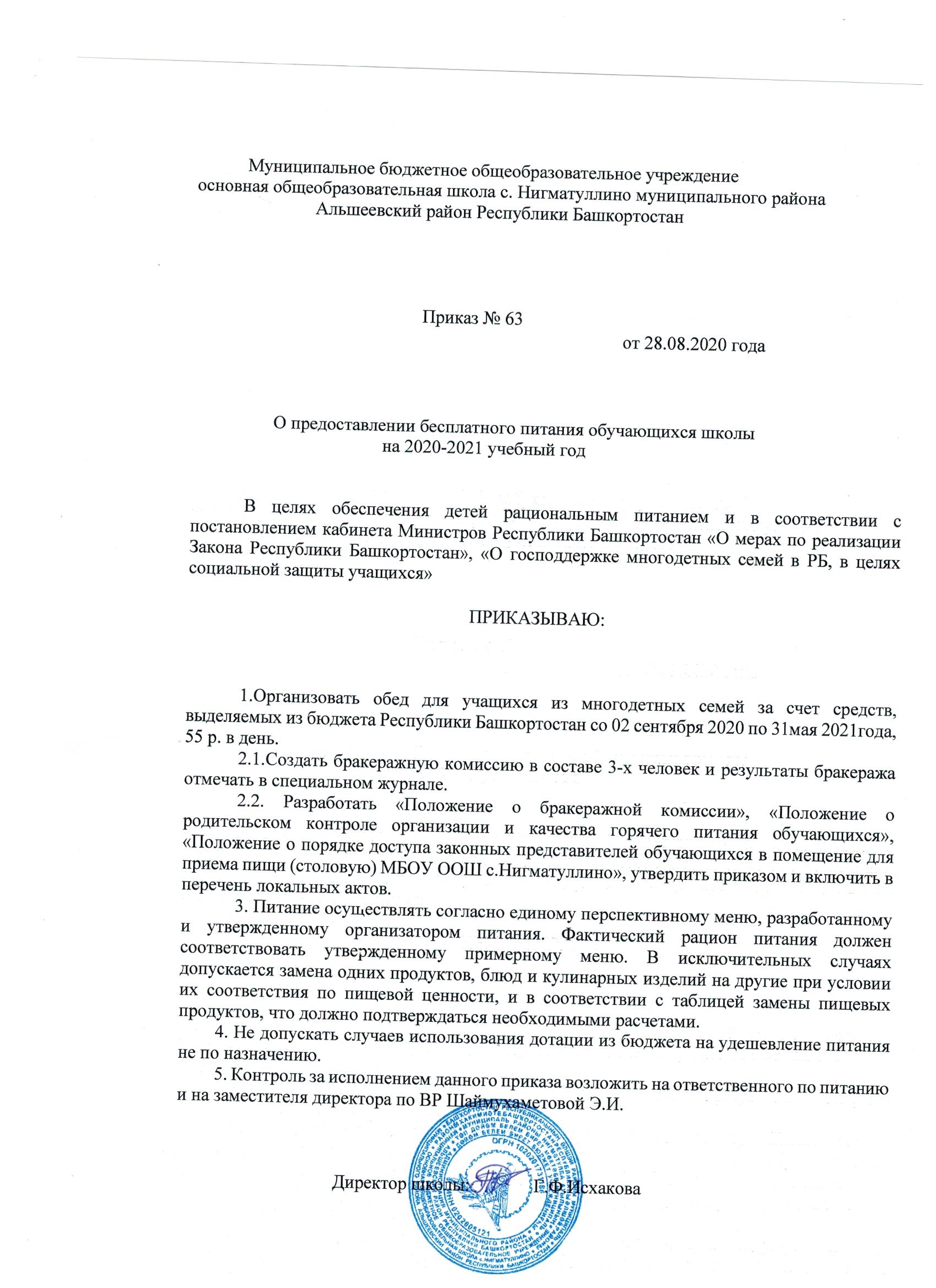 Приказ о предоставлении бесплатного питания обучающихся школы на 2020-2021 учебный год..jpeg