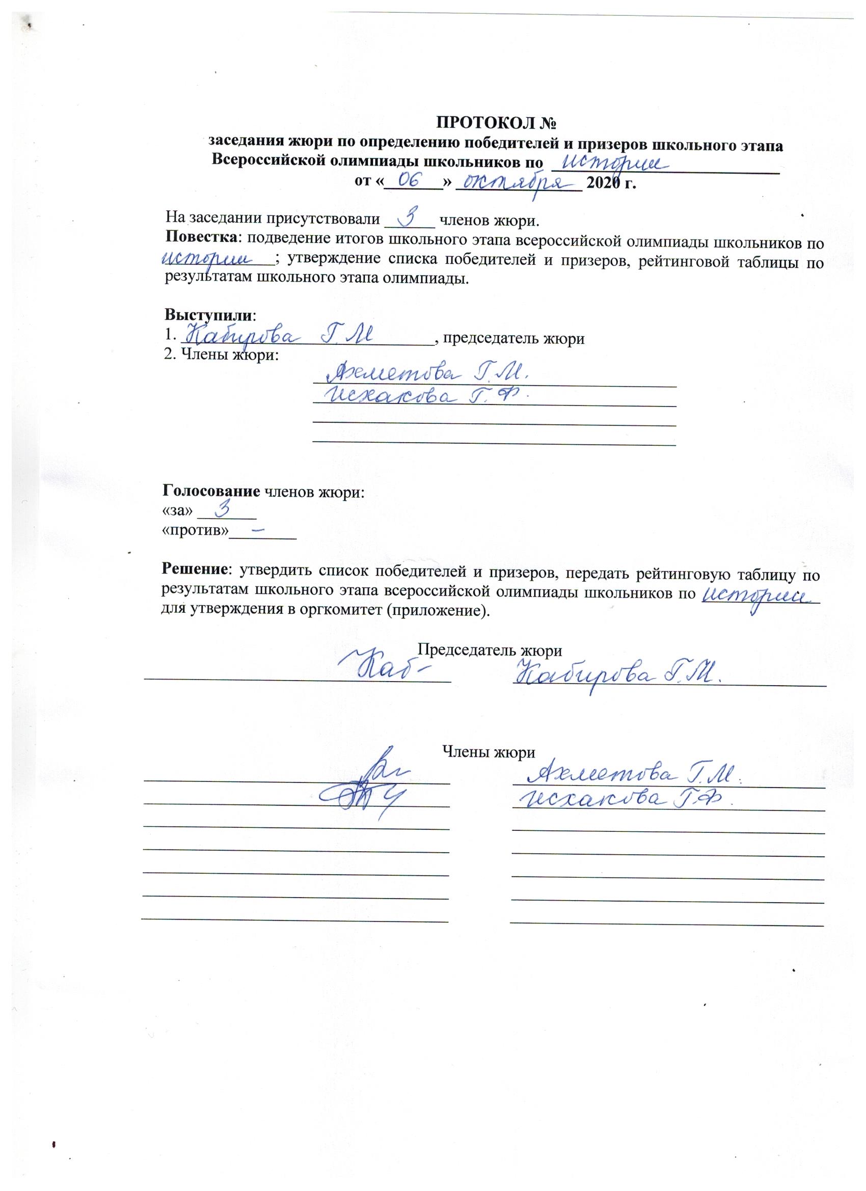 ПРОТОКОЛ по истории 2020