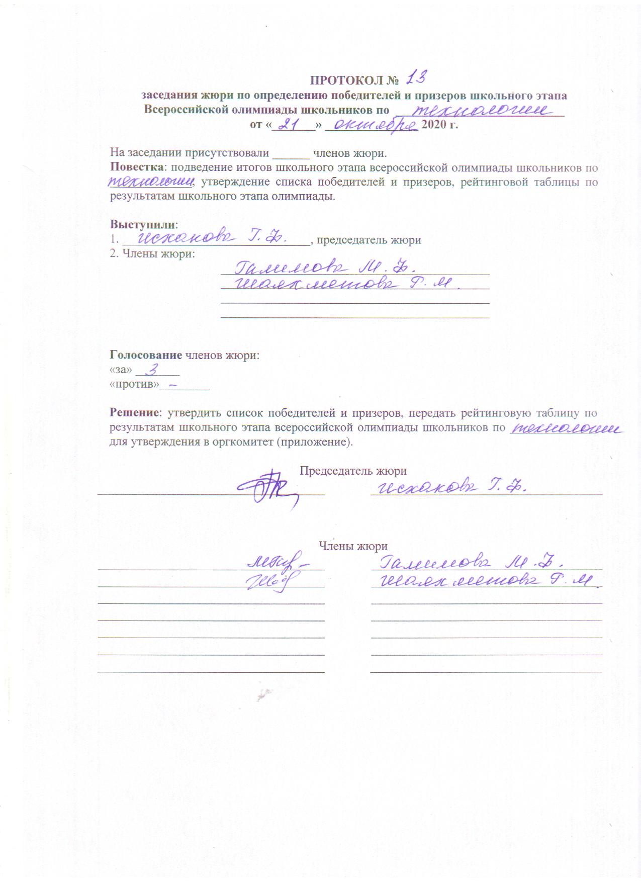 ПРОТОКОЛ по технологии 2020
