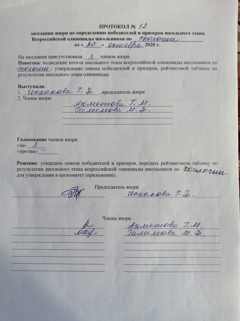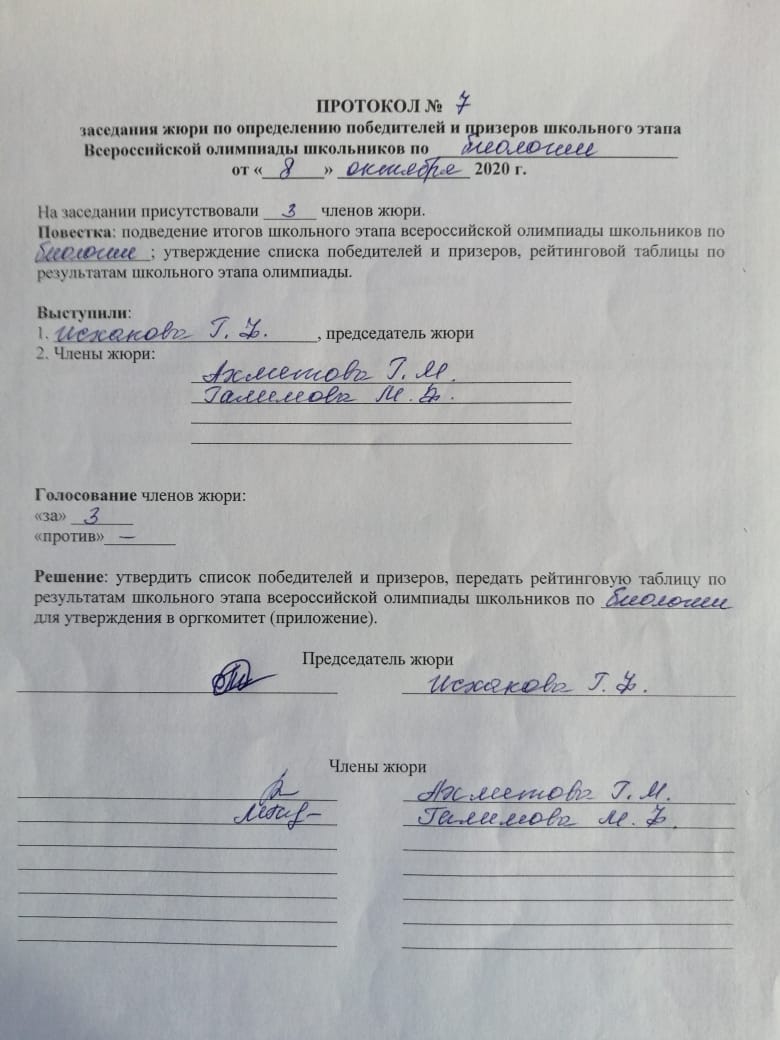 ПРОТОКОЛ по биологии 2020