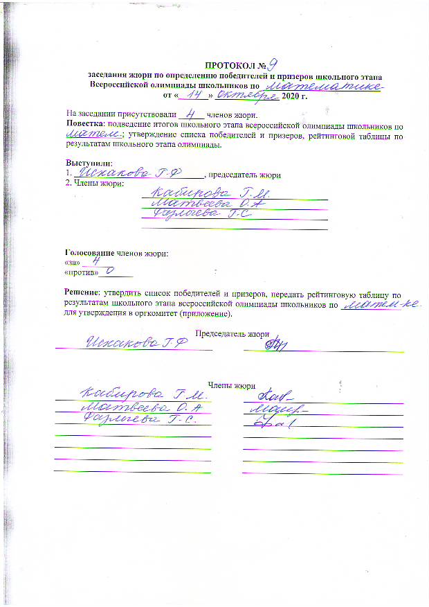 ПРОТОКОЛ по математике 2020