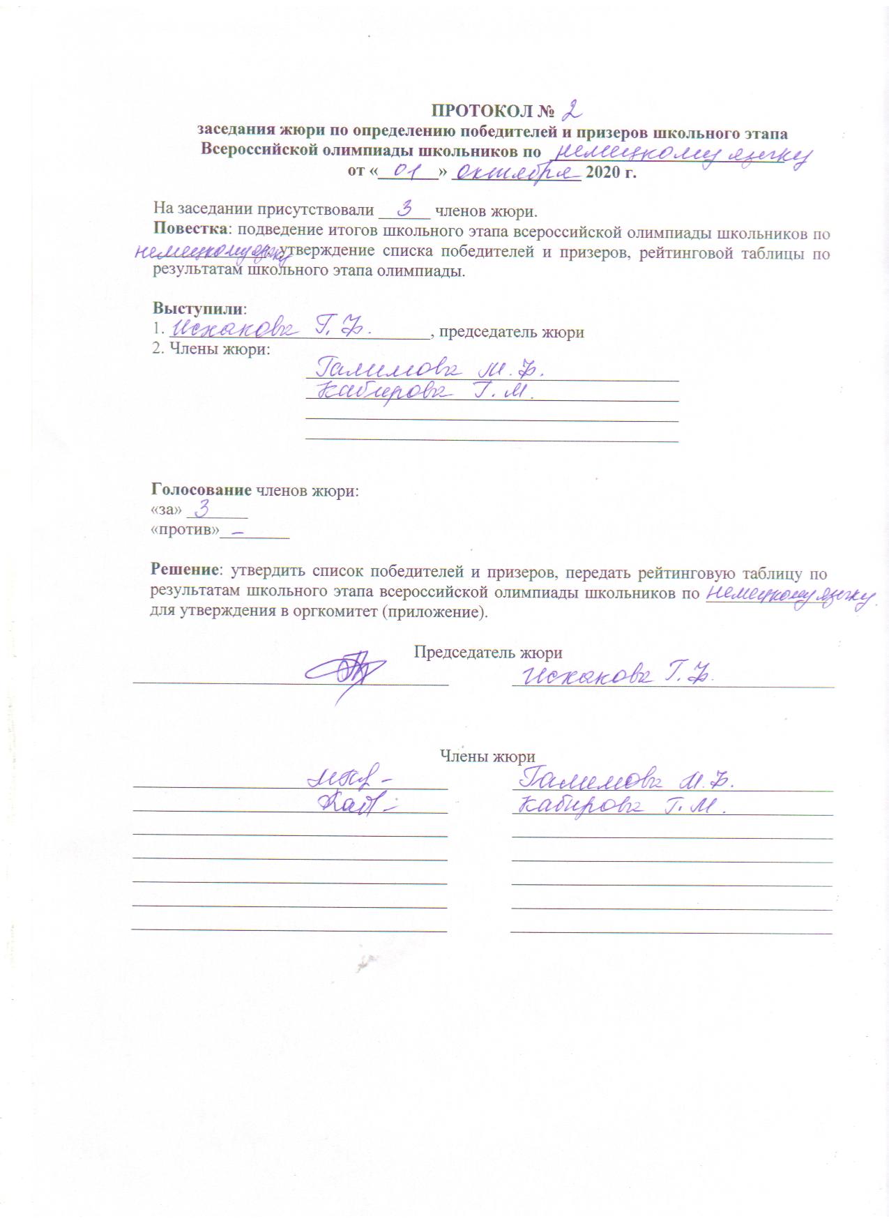 ПРОТОКОЛ по немец.языку